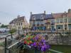 Om twaalf uur begint het te druppelen. Om één uur gestadig te regenen. Genoeg om nat te worden. Om twee uur in Veurne, het is weer droog. Wat een mooie stad is dit. Gek, maar ik had er nog nooit van gehoord. Prachtige Grote Markt,omlijst door oude gevels, terrassen en daar achter een paar kolossale kerken. De regen, en het totale gebrek aan bankjes laat mij wat minder rusten / gewoon ff zitten dan anders. Dat er geen bankjes zijn is eigenlijk best wel logisch. RouteYou heeft een route gekozen, die ik gedwee volg, weg van alle drukke doorgaande wegen, geen fietspaden, afgelegen akker-weggetjes. Niet echt interessant vandaag. Maar wel heel rustig.